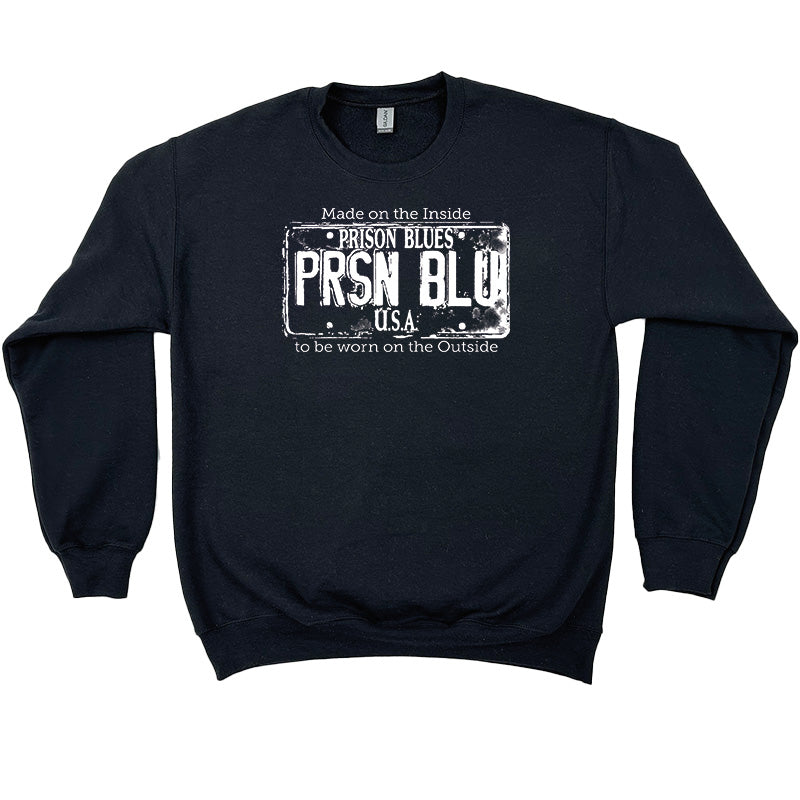 Crew Neck Sweatshirt Black w/White USA Plate Logo