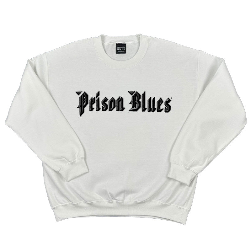 Crew Neck Sweatshirt White w/Black and Brilliant Sliver Metal Logo