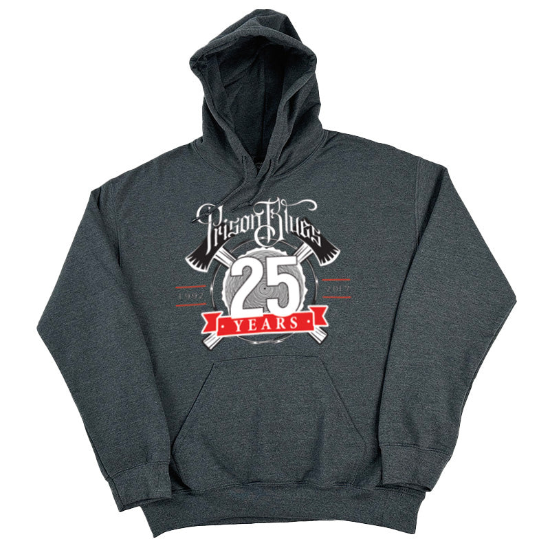 Pull Over Hooded Sweatshirt Dark Heather w/White and Scarlet Red 25th Anniversary
