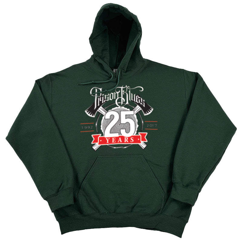 Pull Over Hooded Sweatshirt Forest Green w/White and Scarlet Red 25th Anniversary
